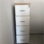 Quatro gavetas com suporte para pasta suspensa e trilho telescópico, medida interna: 375x335x229mm (CxPxA);