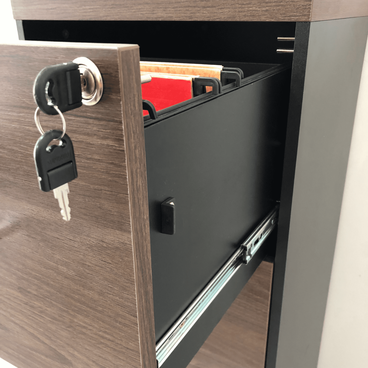 O produto possui puxadores em metal cromado, garantia de qualidade, brilho e resistência. Conta com chave para que você possa guardar documentos e objetos pessoais com total segurança. Unindo praticidade e elegância, este produto é o que falta para seu escritório ser muito mais organizado e produtivo!