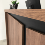 Deseja um ambiente corporativo elegante para receber bem seus convidados e clientes? O Balcão de Atendimento da Y37 é perfeito para isso, pois é um produto sofisticado e ideal para atendimentos. e peças de Tamburato de 50mm de espessura Tampos superiores em Tamburato 37mm que certificam qualidade. Além disso, na parte interna há amplo espaço para trabalhar de forma organizada e eficiente.
