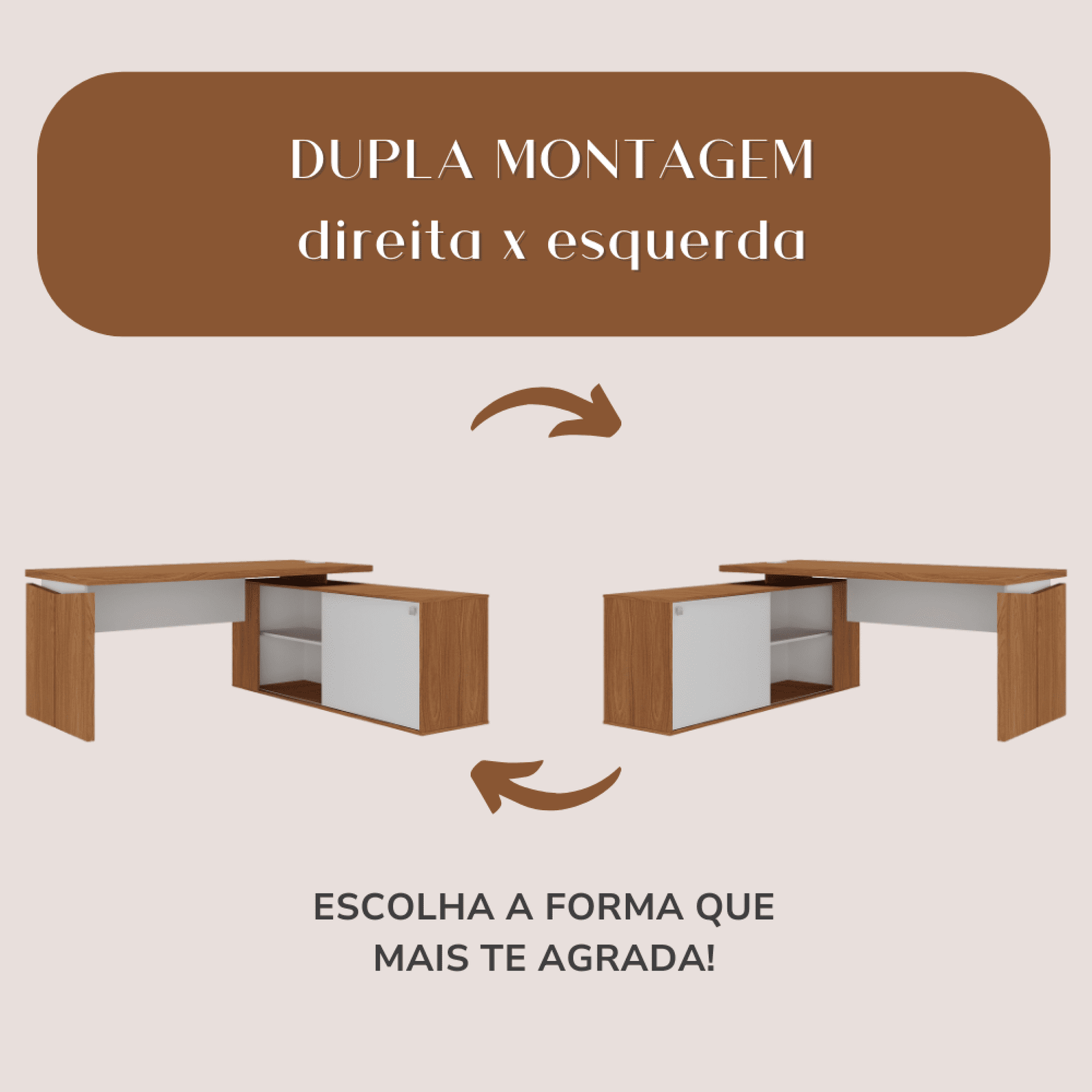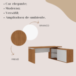 Com um balcão com prateleiras acessíveis, perfeitas para guardar seus variados objetos de trabalho ou estudo, o ambiente fica muito mais organizado e prático. A caixa de conectividade sobre a mesa permitirá que você conecte seus eletrônicos e carregue seu celular com muito mais facilidade e conveniência.