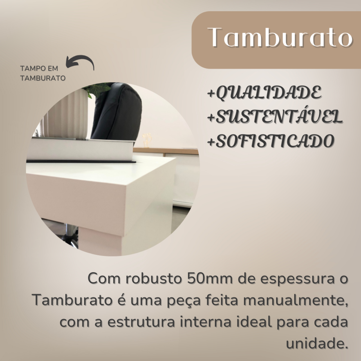 A estrutura de Tamburato de 50 mm de espessura garante um produto robusto, forte e sofisticado. O revestimento é feito em BP e as bordas são de PVC, proporcionando resistência a impactos, atrito e umidade, certificando uma maior durabilidade ao móvel. Com design contemporâneo e versátil, este produto ficará perfeito complementando seu escritório, quarto ou home office!