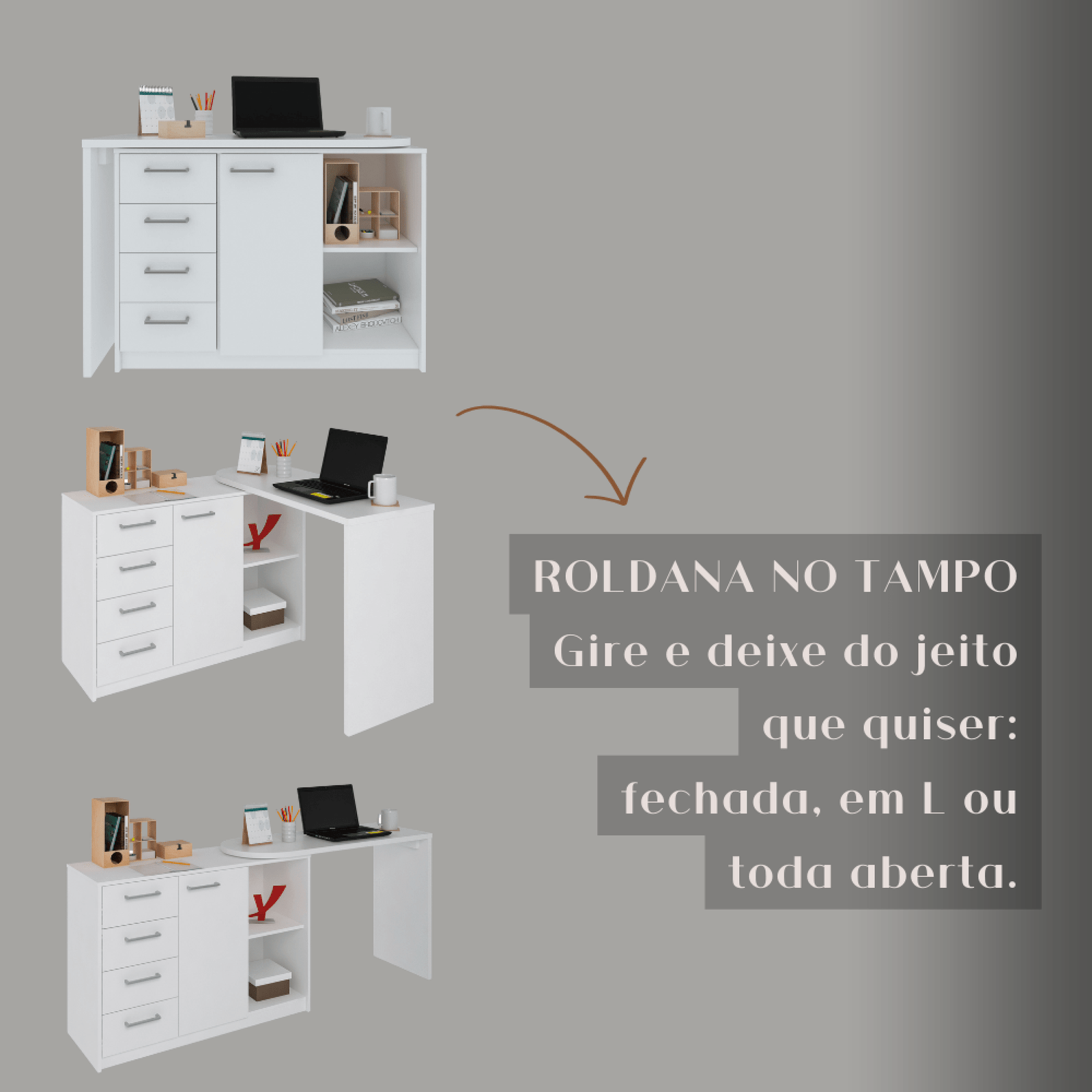 Trabalhe e estude de maneira organizada e moderna com a Mesa Logan, perfeita para você que pretende transformar qualquer ambiente em um local agradável e sofisticado. Com design versátil e estrutura flexível, este produto pode ser um balcão compacto, uma mesa em L ou também uma bela escrivaninha. O espaçoso tampo garante muito conforto e comodidade, enquanto as prateleiras e as gavetas são ideais para manter o local organizado, já que proporcionam amplo espaço para guardar inúmeras coisas. O revestimento é feito em BP e as bordas são de PVC, proporcionando resistência a impactos, atrito e umidade, certificando uma maior durabilidade ao móvel.